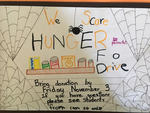 Please bring in non-perishable foods such as lentils, beans, pasta, and baby food by Friday, November 3rd. Thanks for your support!