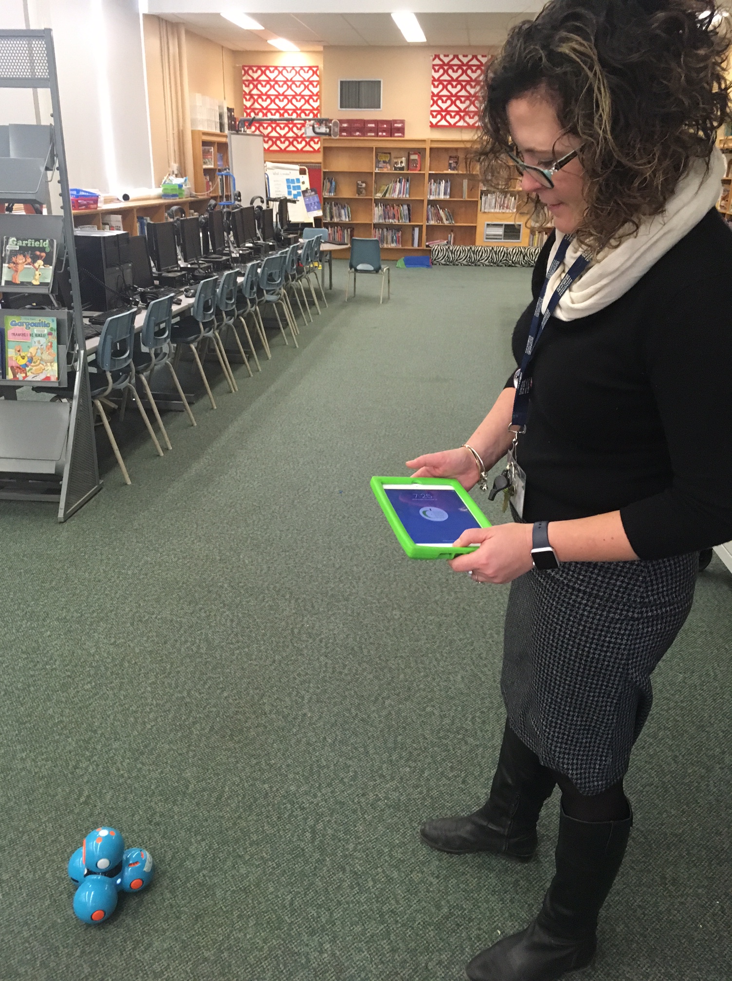 Over the last few years, our librarian, Ms Kopka, has been holding a couple of Scholastic book fairs each year. This past week, as the fall book fair was wrapping up, she showed us some of the exciting new additions she was able to purchase with the proceeds of previous book fairs. After each book fair, Scholastic allows schools to receive a combination of credits towards Scholastic Books and cash to use elsewhere. Ms Kopka uses the credits to buy library books and classroom resources housed in the library. And, with the cash, she can buy other things like… ROBOTS! Ms Kopka has purchased 5 pairs of “Dot and Dash” Robots for the library. The students control the Robots using apps on the iPads and the software has activities geared to kids K-6. Ms Kopka has started to use them with her library classes and Maker Space Club to teach kids things like letter recognition, graphing coordinates and coding. A big THANK YOU to all students and parents who purchased books at this year’s fair and also to the parents who were able to do a shift at the cash out table. The fair would not happen without you!