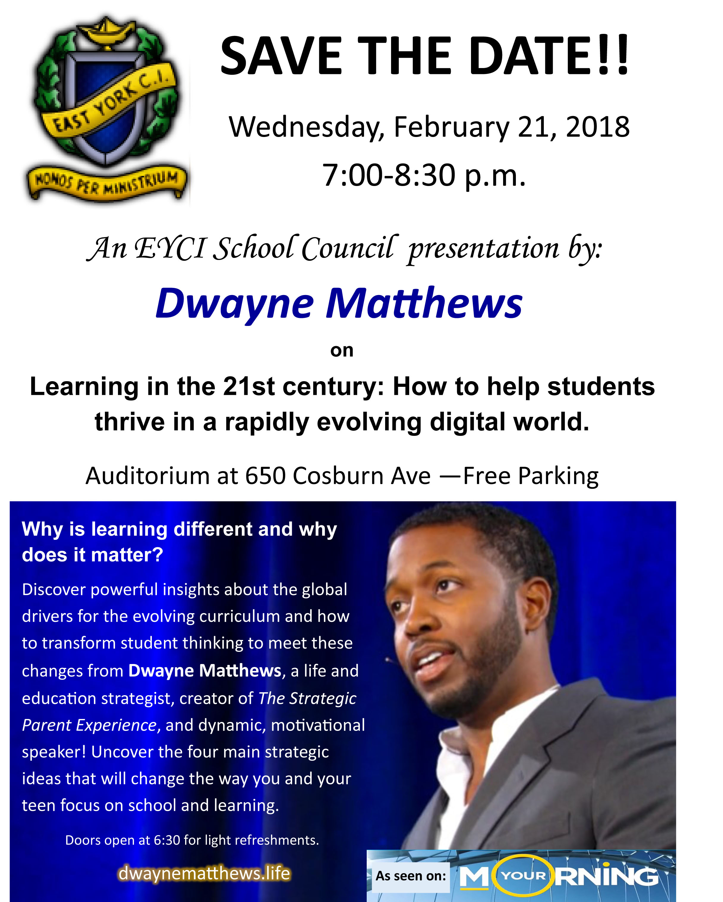 Parenting Seminar at East York Collegiate Institute – Wed, Feb 21st