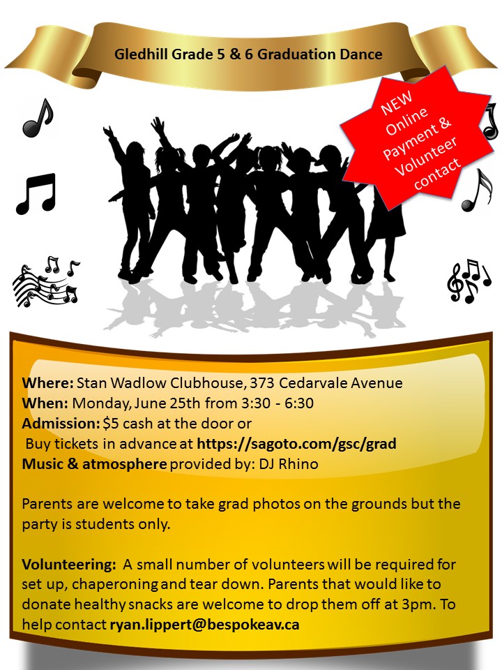A group of parents have also organized a Graduation Dance that will take place after school from 3:30 – 6:30. See details below: