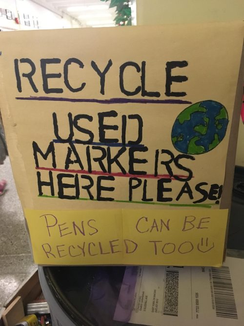 - Hi Everyone! Please look for our new marker box on the main floor. (near the battery recycling bin) If your markers or pens are used up, they can be collected for recycling too. Thank you! From the Eco Team.
