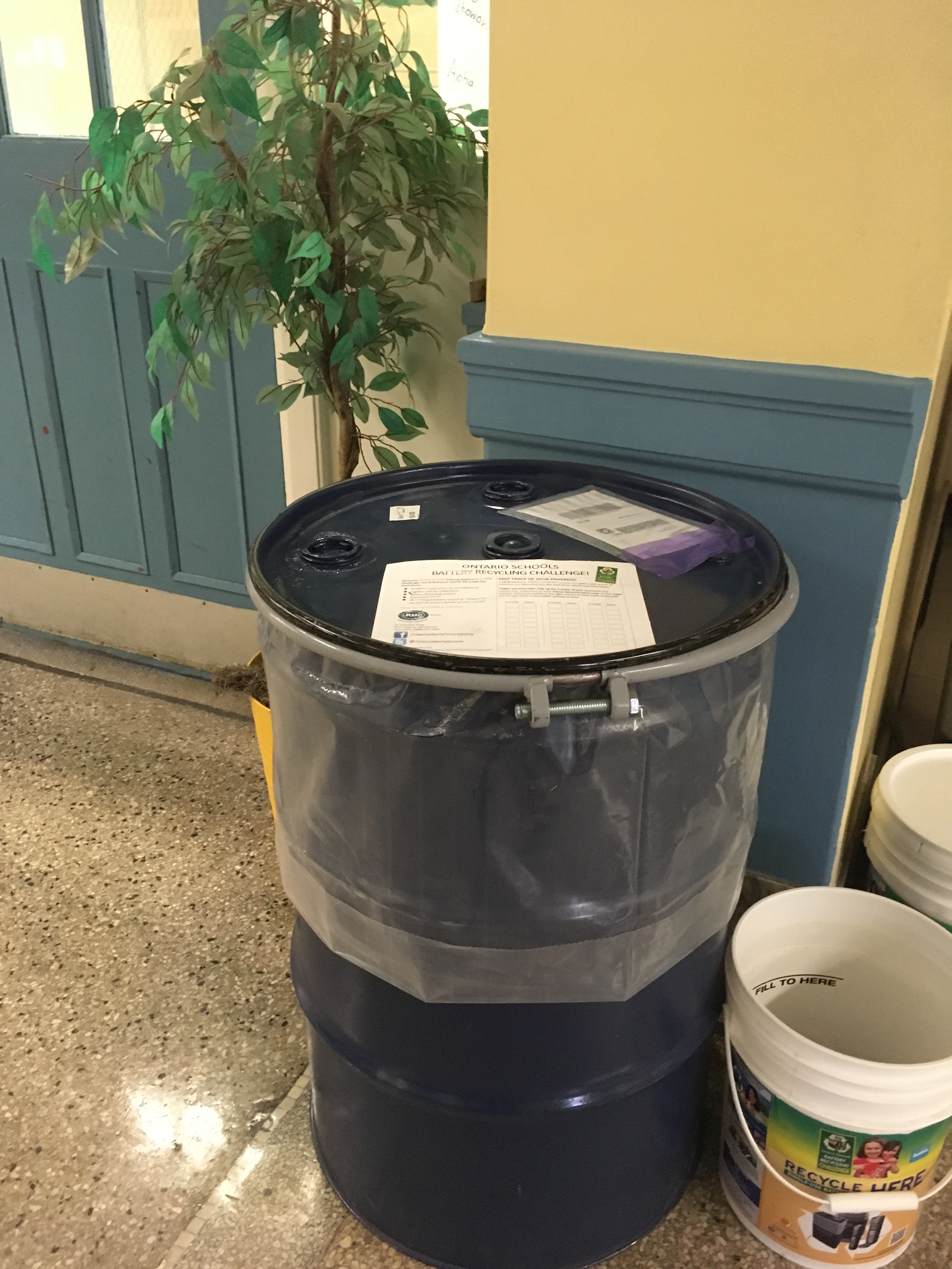 - Eco Club message: The battery recycle bin near the main office will be picked up sometime in the next week or so. If you have batteres to recycle please bring them by tomorrow or you might miss your chance for this year. Thanks for keeping harmful chemicals out of our water and soil.