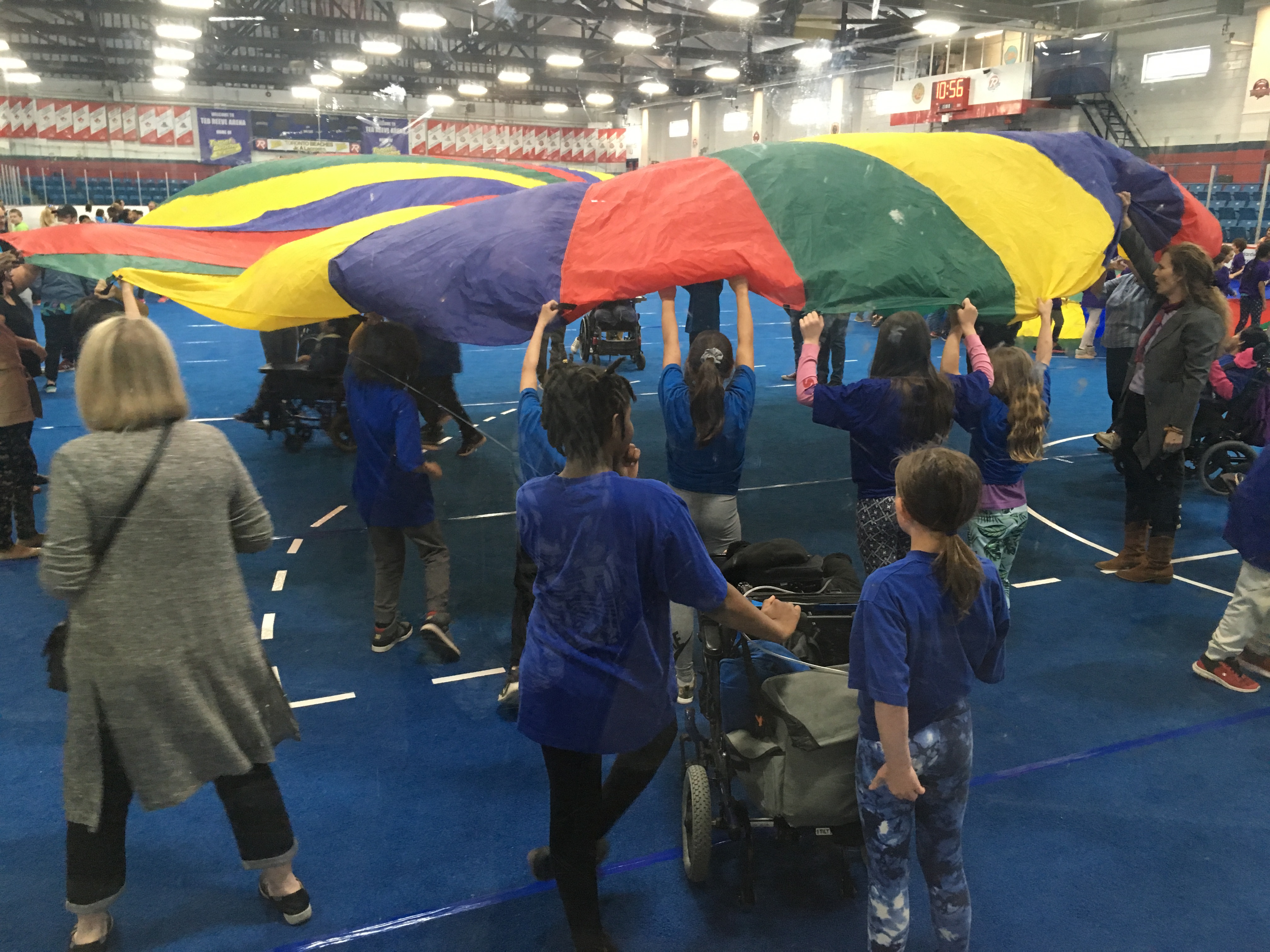 For the past 7 years, one of our teachers, Tina Bey, has been walking her classes to McCordic once a week during the spring. The Gledhill students work in partnership with the McCordic students, dancing and spending time together. Their culminating event is Special Needs FolkFest at Ted Reeve Arena.