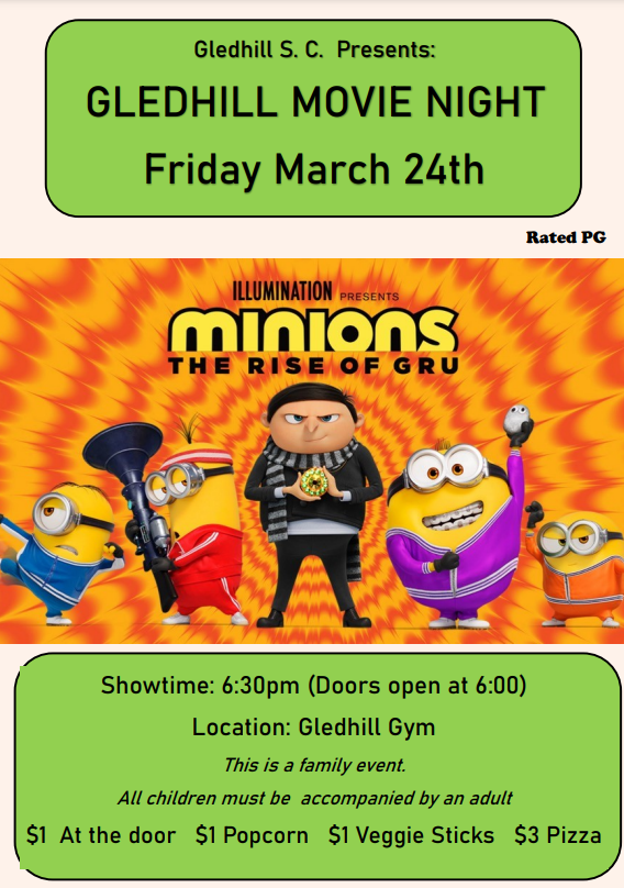 Join us on Friday March 24 for Family Movie Night. Doors open at 6:00pm, Showtime is 6:30pm. Cash only event.