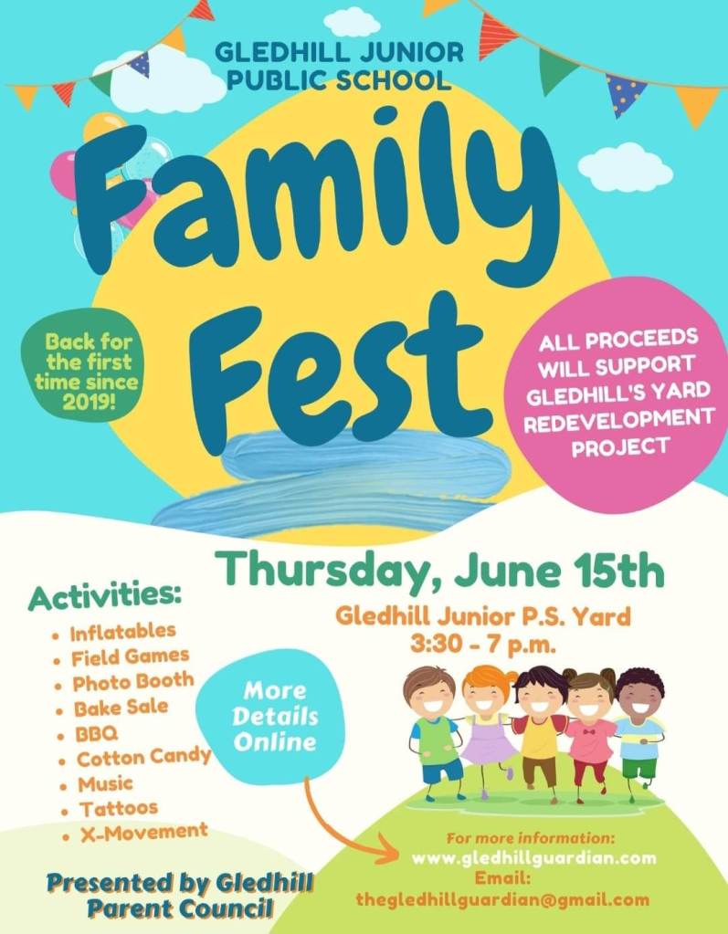 We are just two weeks out from Gledhill’s Family Fest. Can you believe we haven’t hosted this large-scale event since 2019? We can’t wait to get back to it! This is a community event, even if you don’t have a kiddo at Gledhill Jr PS, you and your family are still invited to join in the fun!