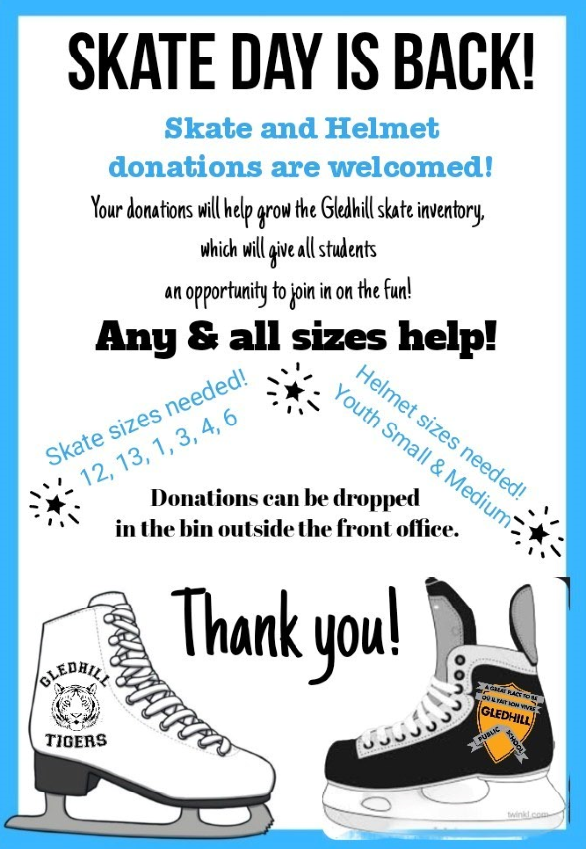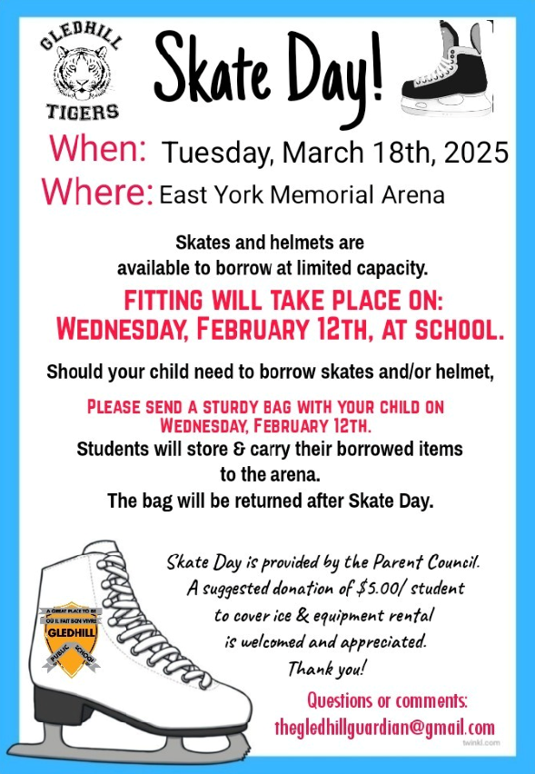Fittings for kids who would like to borrow skates & helmets will take place on Wed Feb 12th, please ensure your child brings a sturdy bag as they will be required to store & carry their borrowed items to the arena and then return after Skate Day.