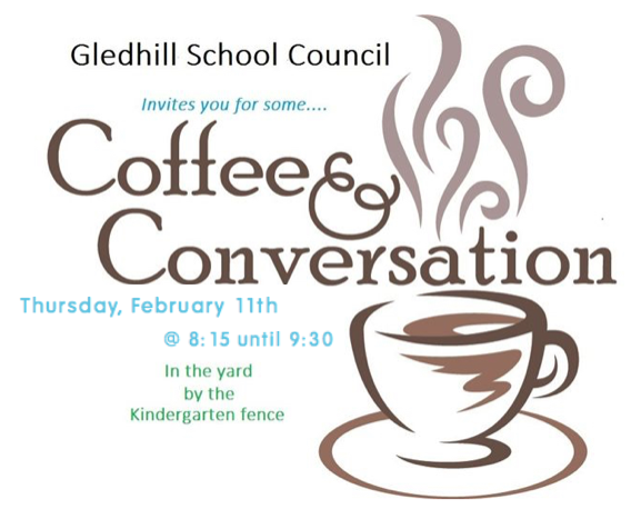 The next Coffee and Conversation will take place on Thursday, February 11th at 8:15 in the school yard. (this is a correction to the information shared on the calendar the school sent out stating it is on Friday February 5th)