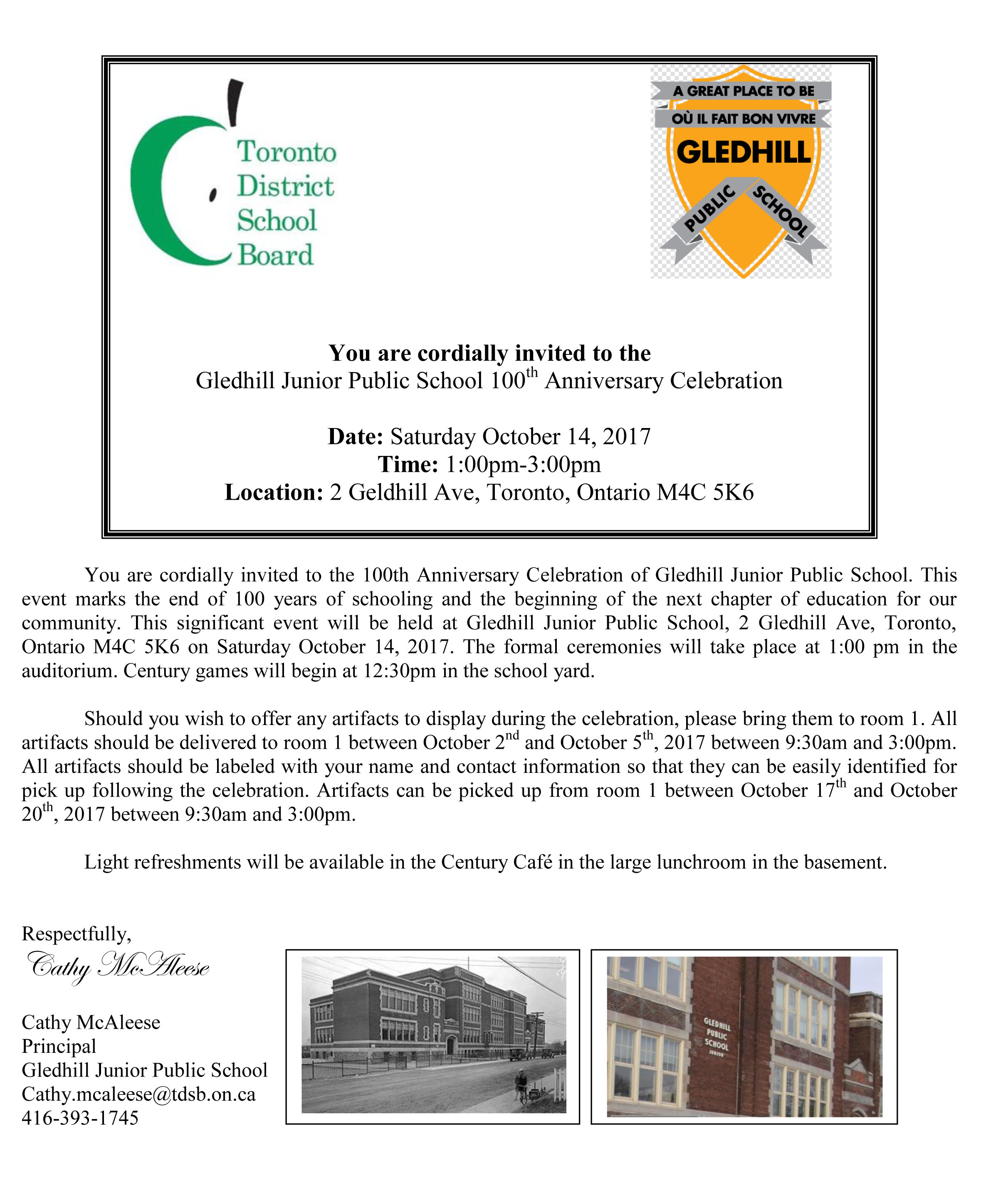 Comments Off on Gledhill’s 100th Anniversary Celebration is less than 2 weeks away!
